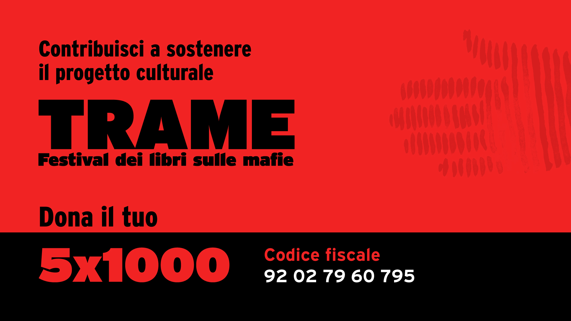Il tuo 5×1000 sarà integralmente impiegato nel progetto Trame, che non è solo un festival dei libri sulle mafie, ma un percorso di riscatto e di innovazione sociale che dura tutto un anno e di anno in anno, una rivoluzione culturale che coinvolge centinaia di giovani. Dal cuore della Calabria arriva la voglia di denuncia e di risveglio delle coscienze contro le mafie. Trame è la voce di un’Italia che non vuole stare in silenzio.