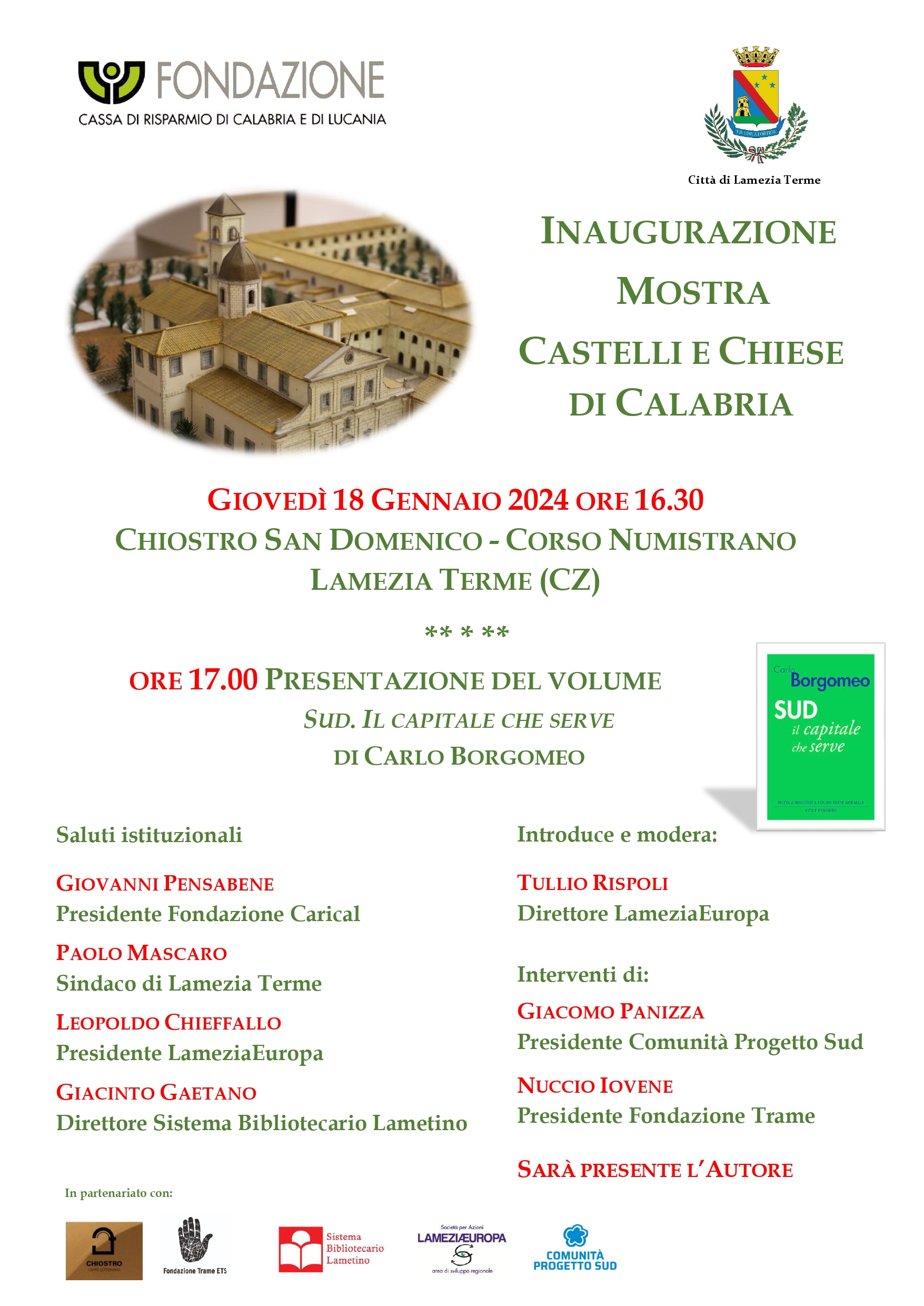 Inaugurazione della mostra “Chiese e castelli di Calabria”. Presentazione del libro “Sud. Il capitale che serve” di Carlo Borgomeo.