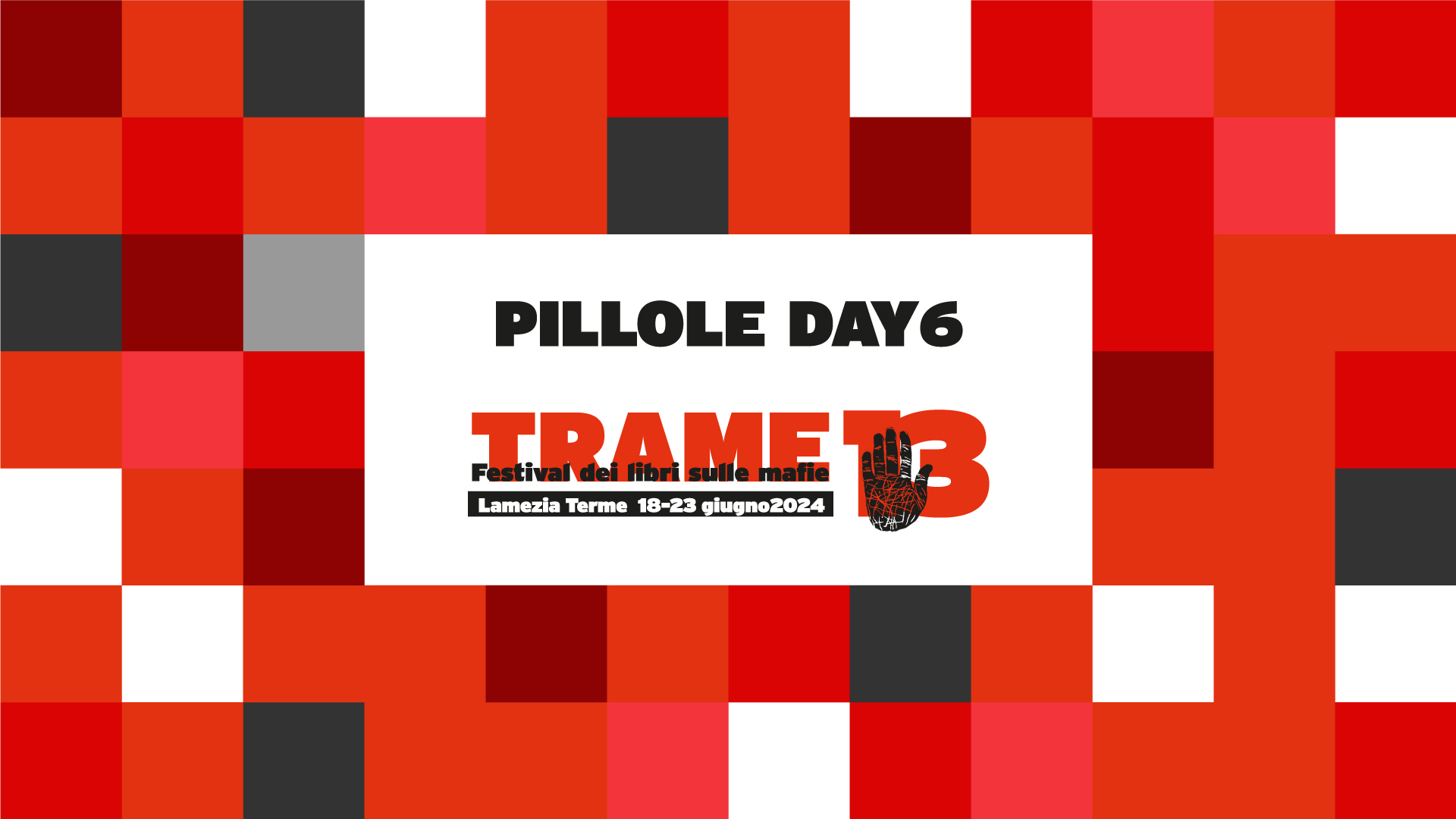 La sesta e ultima giornata di Trame 13 inizia con Piazze Connection: presenti Nuccio Iovene, Giovanni Tizian, Deborah Cartisano, Carmelo Bertolami e Nicola Leoni; a seguire un incontro in memoria di Peppe Valarioti, con Nuccio Iovene, Giovanni Tizian, Giuseppe Lavorato e Debora Scandinaro. Alle 18:30 Luigi Ferro ha presentato insieme a Marcello Ravveduto il libro "Verità nascoste. Da Piazza Fontana a Moby Prince: la giustizia negata e i familiari delle vittime", prima dell'intervento di Sabrina Pisu e Viviana Spinella, che hanno raccontato la storia e la vita di Francesca Morivllo, moglie di Giovanni Falcone, presentando il libro "Il mio silenzio è una stella. Vita di Francesca Morvillo, giudice innamorata di giustizia". Subito dopo sono saliti sul palco Gaetano Savatteri, Gabriele Genisi e Giovanni Tizian per parlare della differenza di narrazione della mafia tra carta stampata e cinema. Francesca Nava ha poi presentato l'inchiesta sulla malasanità, parlandone con Amalia Bruni, Luca Bianchi e Patty Torchia. Ultimo incontro della serata: Peppe Voltarelli, che si è poi esibito in live, e Francesco Sacco. A concludere l'edizione, la festa dei volontari e delle volontarie, i Tramati, che hanno dato appuntamento al prossimo anno, a Trame 14!