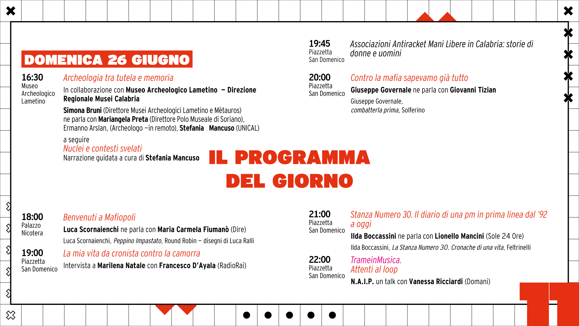 Alle 21 sul palco di Trame “La stanza numero 30”, il libro autobiografico di Ilda Boccassini. A dialogare con la donna magistrato, titolare delle inchieste più discusse degli ultimi anni, è il giornalista Lionello Mancini.
