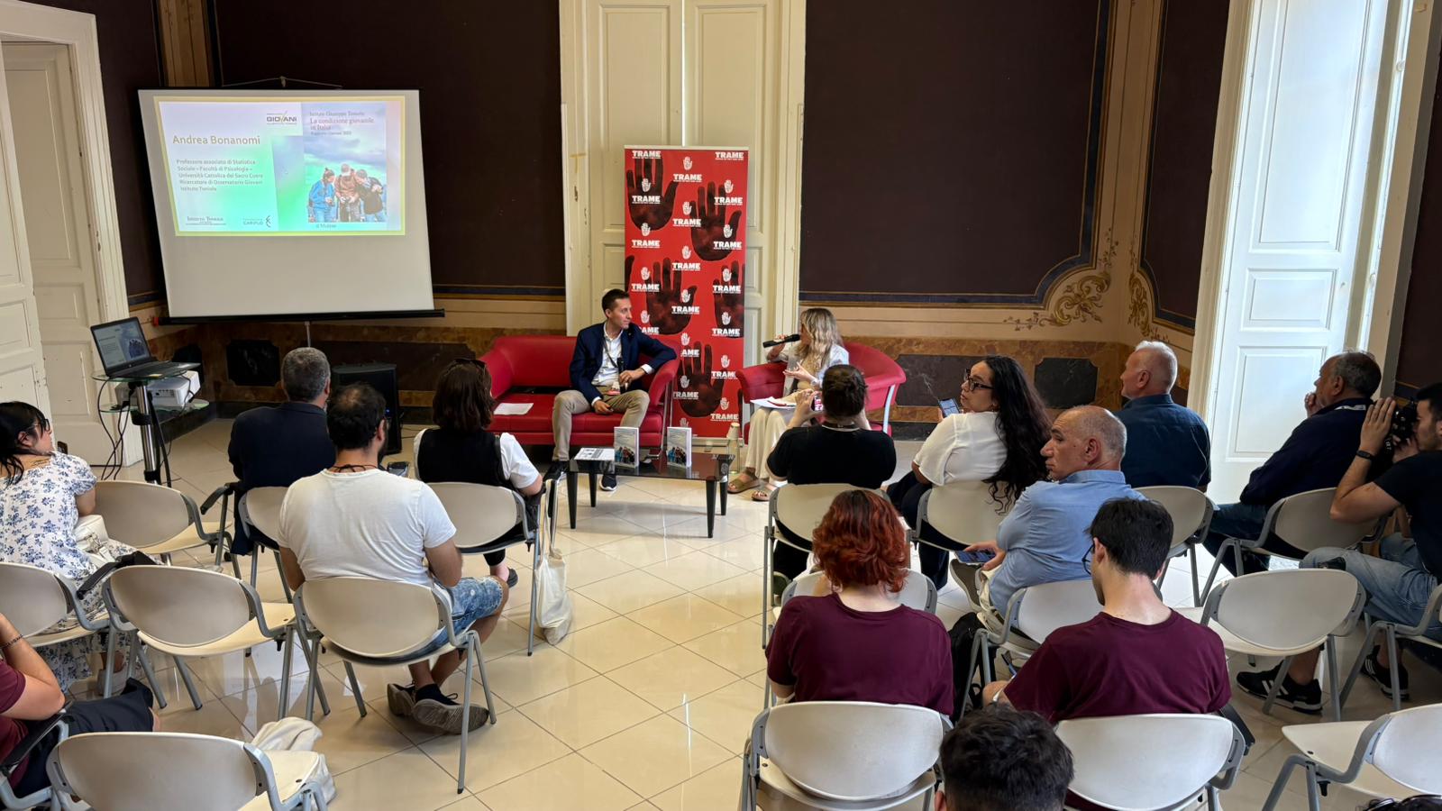 Nella seconda giornata del Festival Trame, si è svolto l’incontro con Andrea Bonanomi, docente della facoltà di Psicologia presso l’Università Cattolica del Sacro Cuore di Milano,  che ha presentato il Rapporto Giovani 2025, parlandone con la giornalista Maria Chiara Caruso in collaborazione con il Sistema Bibliotecario Lametino.