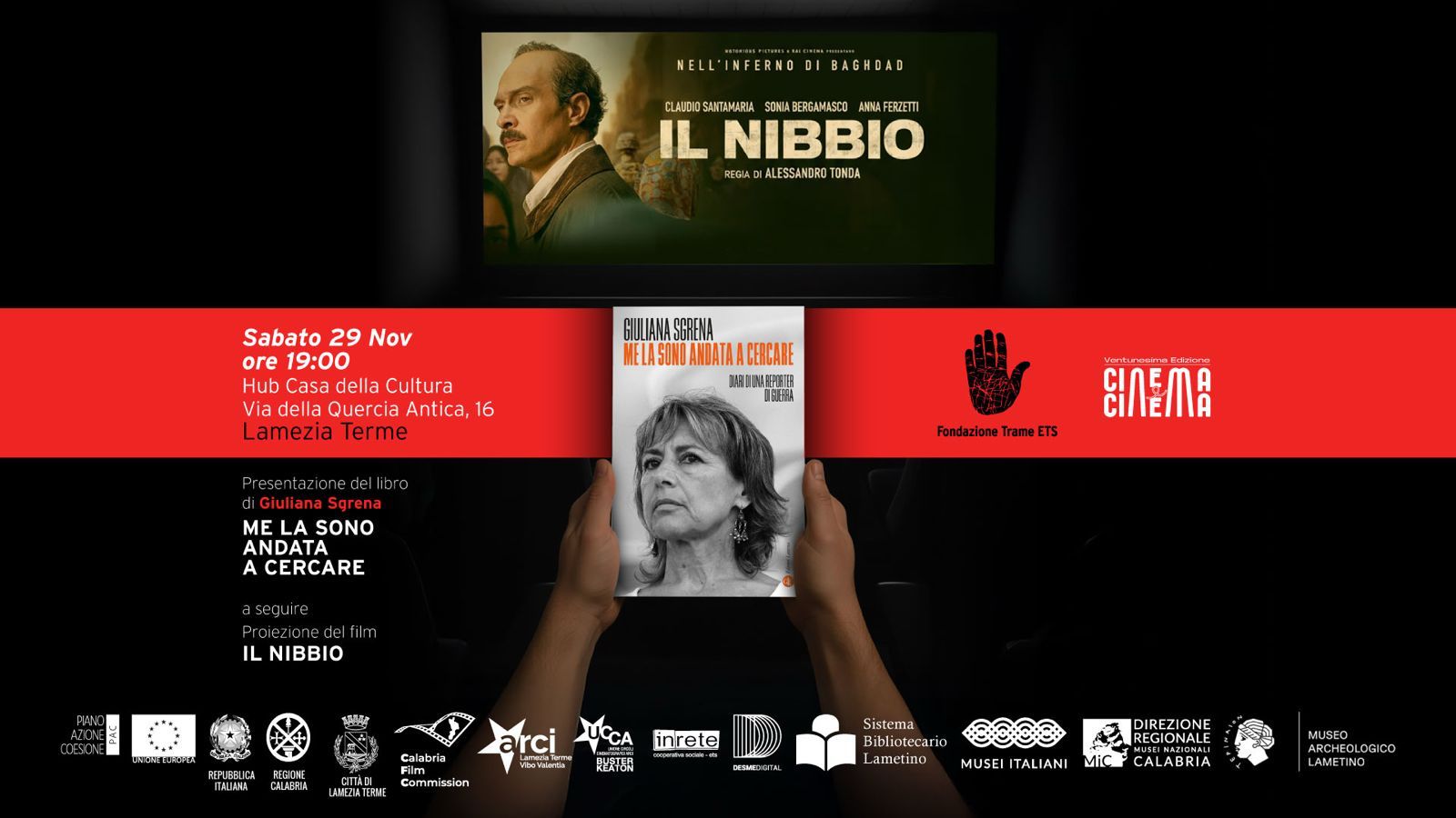 “Cinema&Cinema” e Fondazione Trame, doppio appuntamento: Giuliana Sgrena presenta il suo ultimo libro “Me la sono andata a cercare” e a seguire la proiezione del film “Il Nibbio”