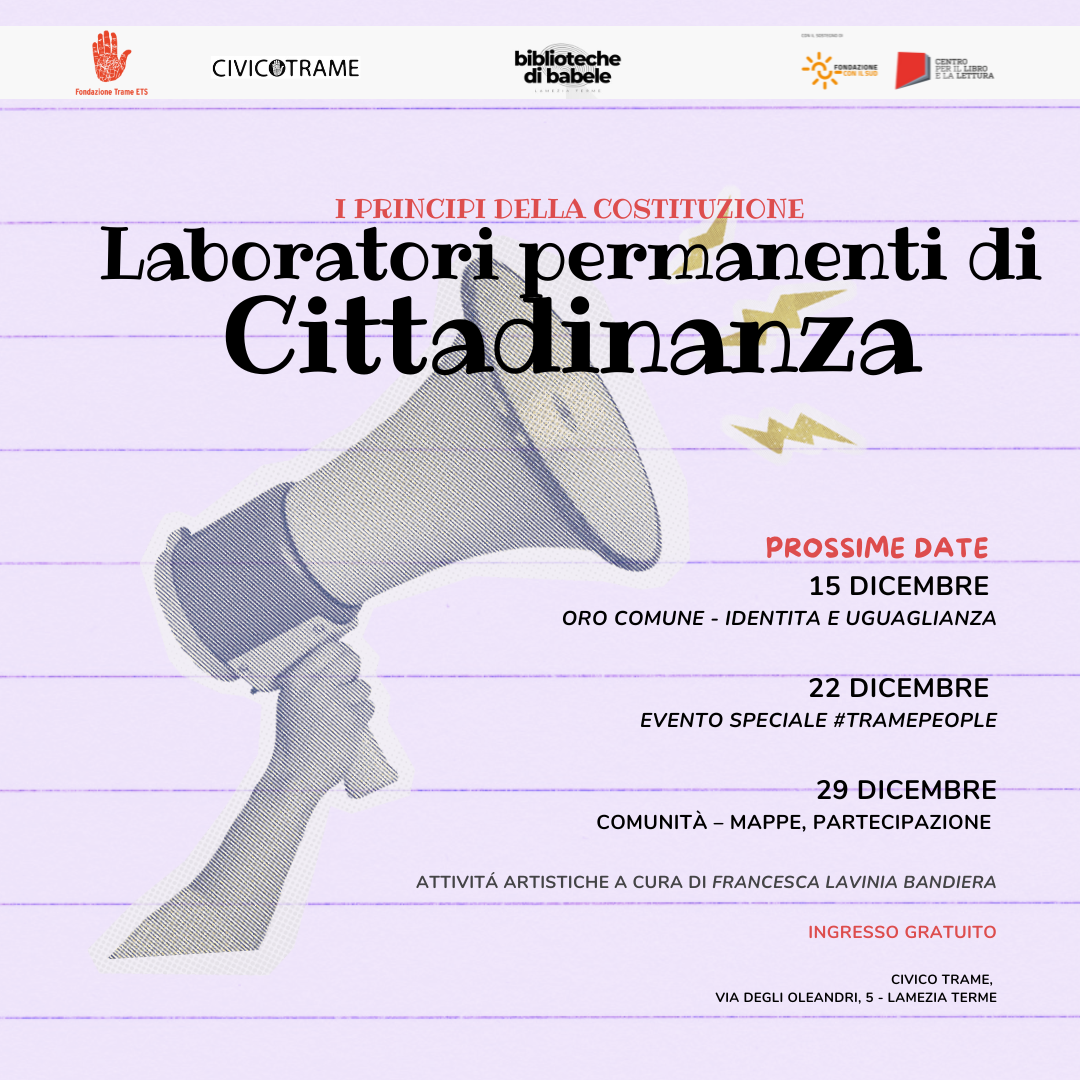 Fondazione Trame. A dicembre tre nuovi appuntamenti per “Biblioteche di Babele” a Civico Trame