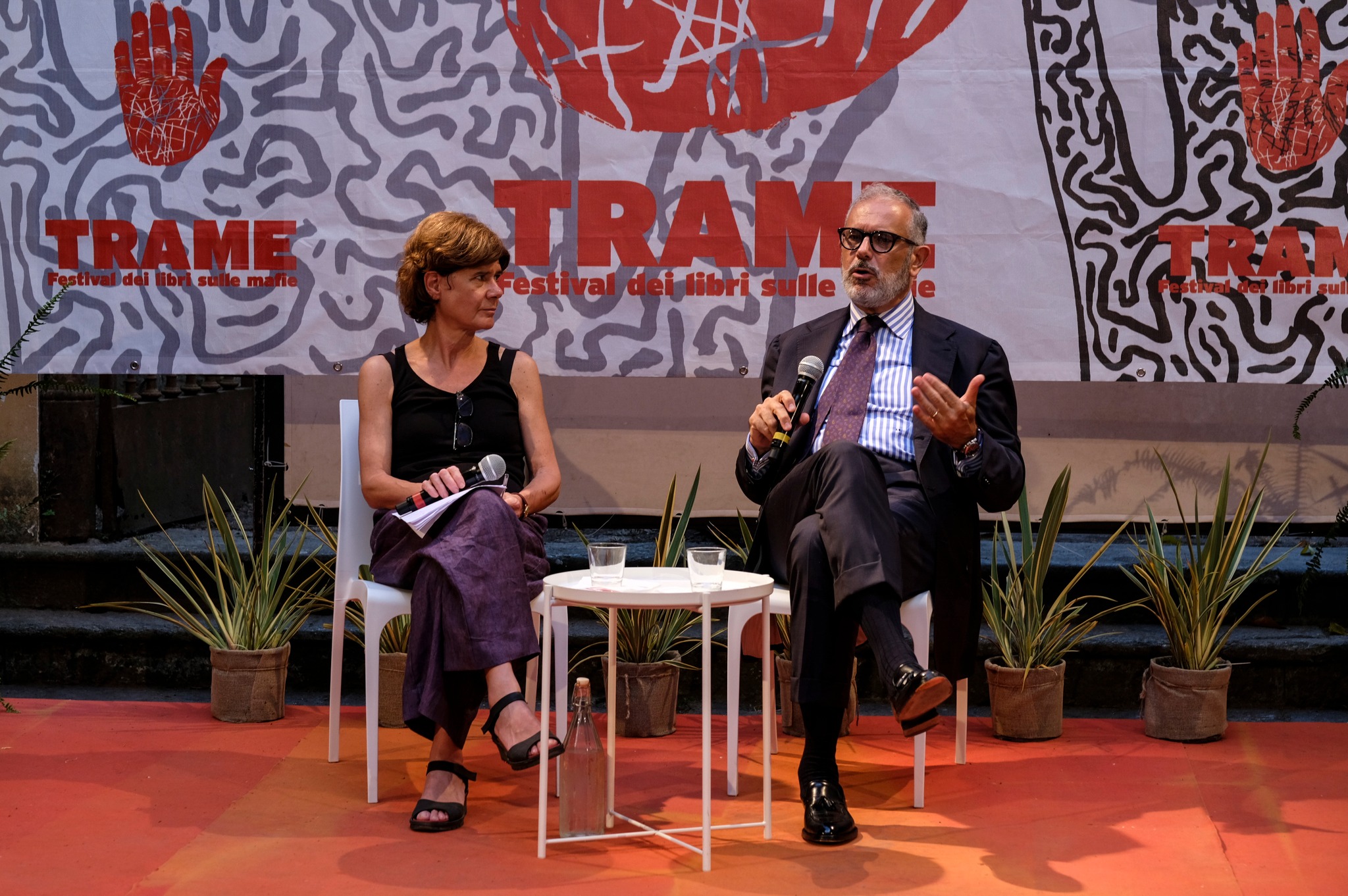 Italo Borrello di Banca d'Italia e Federica Margaritora hanno discusso il rapporto UIF 2024 a Trame, tra calo delle segnalazioni, norme europee e sfide globali contro il riciclaggio e il finanziamento del terrorismo.