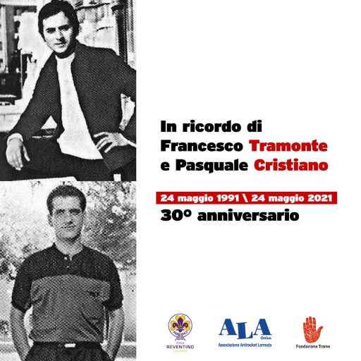 La data del 24 maggio è emblematica. Il 24 maggio 1991 furono barbaramente uccisi a colpi di kalashnikov due dipendenti comunali addetti alla nettezza urbana, Francesco Tramonte e Pasquale Cristiano, nel quartiere Miraglia di Sambiase (ora Lamezia Terme). Della strage, oggi, a 30 anni di distanza, non si conoscono né mandanti né esecutori materiali, nonostante la sentenza della Corte d’Assise di Catanzaro n°11/1993 avesse confermato la natura mafiosa dell'agguato mortale, ritenendolo collegato alla lotta tra bande rivali per la conquista per l’appalto dei rifiuti. All’attentato seguì il primo scioglimento per infiltrazione mafiosa del Consiglio Comunale di Lamezia Terme, a pochi mesi dal rinnovo elettivo dell’amministrazione della Città. Il 24 maggio ‘91 inoltre, aprì il biennio nero dell’attacco della ‘ndrangheta alla città e alle sue istituzioni, che vedrà poi, il 4 gennaio 1992, l’altro gravissimo agguato nel quale vennero trucidati il sovrintendente capo della Polizia di Stato Salvatore Aversa e sua moglie Lucia Precenzano.
